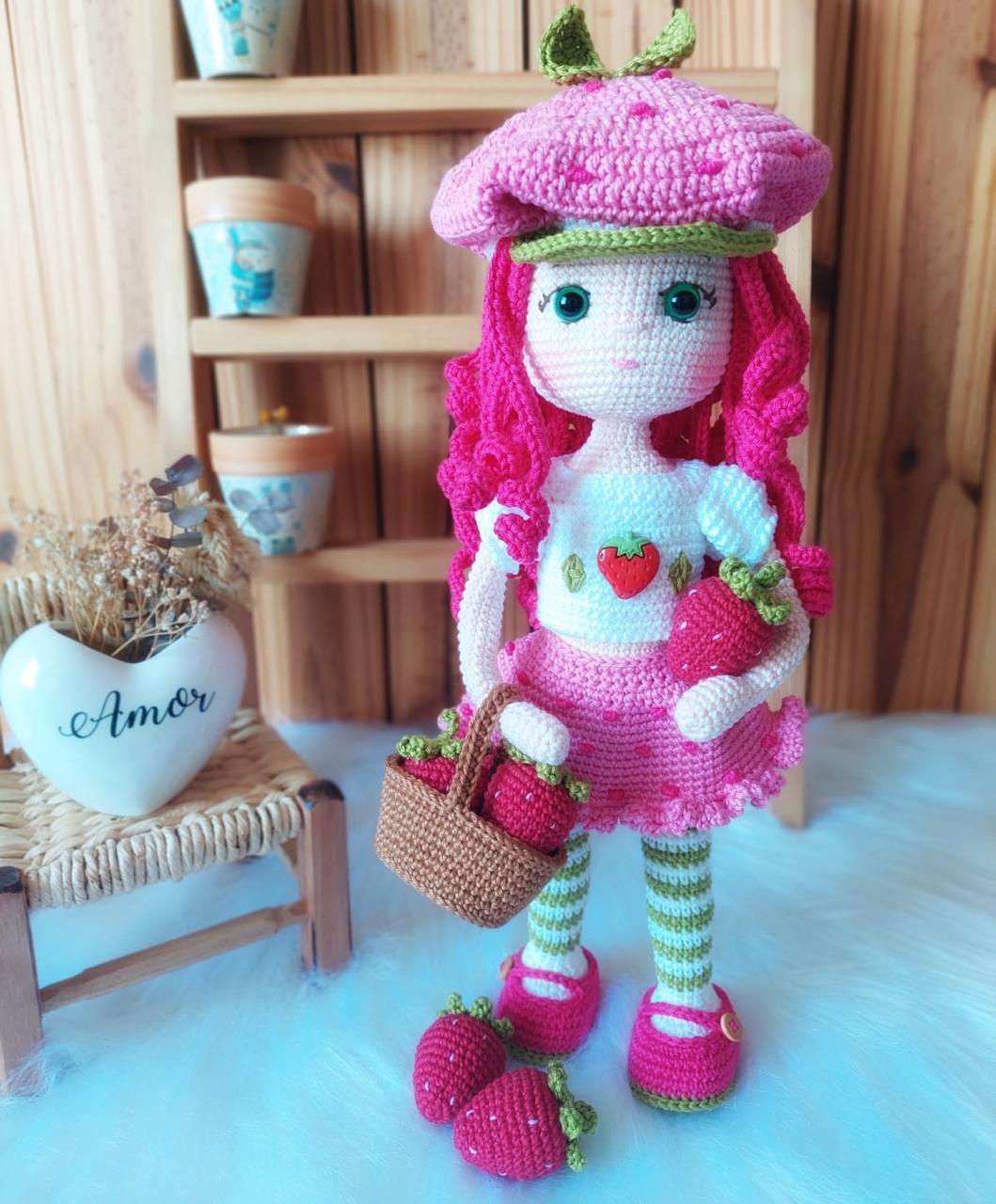 A Boneca Moranguinho é toda feita à mão em crochê (técnica amigurumi) o fio usado é 100% algodão, enchimento com fibra siliconada antialérgica e olhinhos com trava de segurança. Linda, fofa e charmosa. Confira!!! Ótima opção para presente!