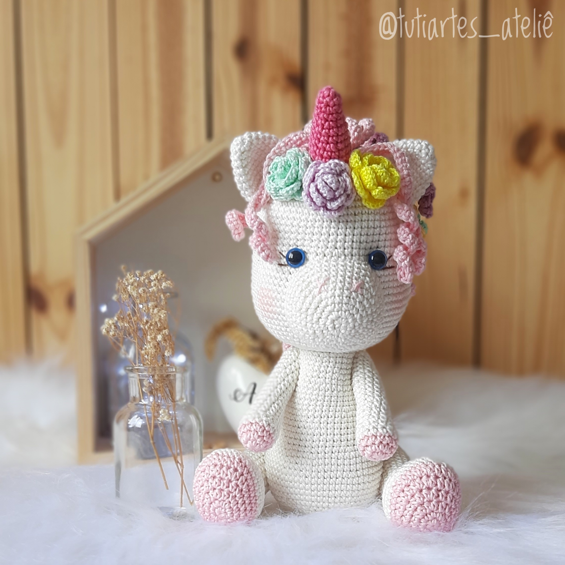A Unicórnio Mel é toda feita à mão em crochê (técnica amigurumi) o fio usado é 100% algodão, enchimento com fibra siliconada antialérgica e olhinhos com trava de segurança. Linda, fofa e charmosa. Confira!!!