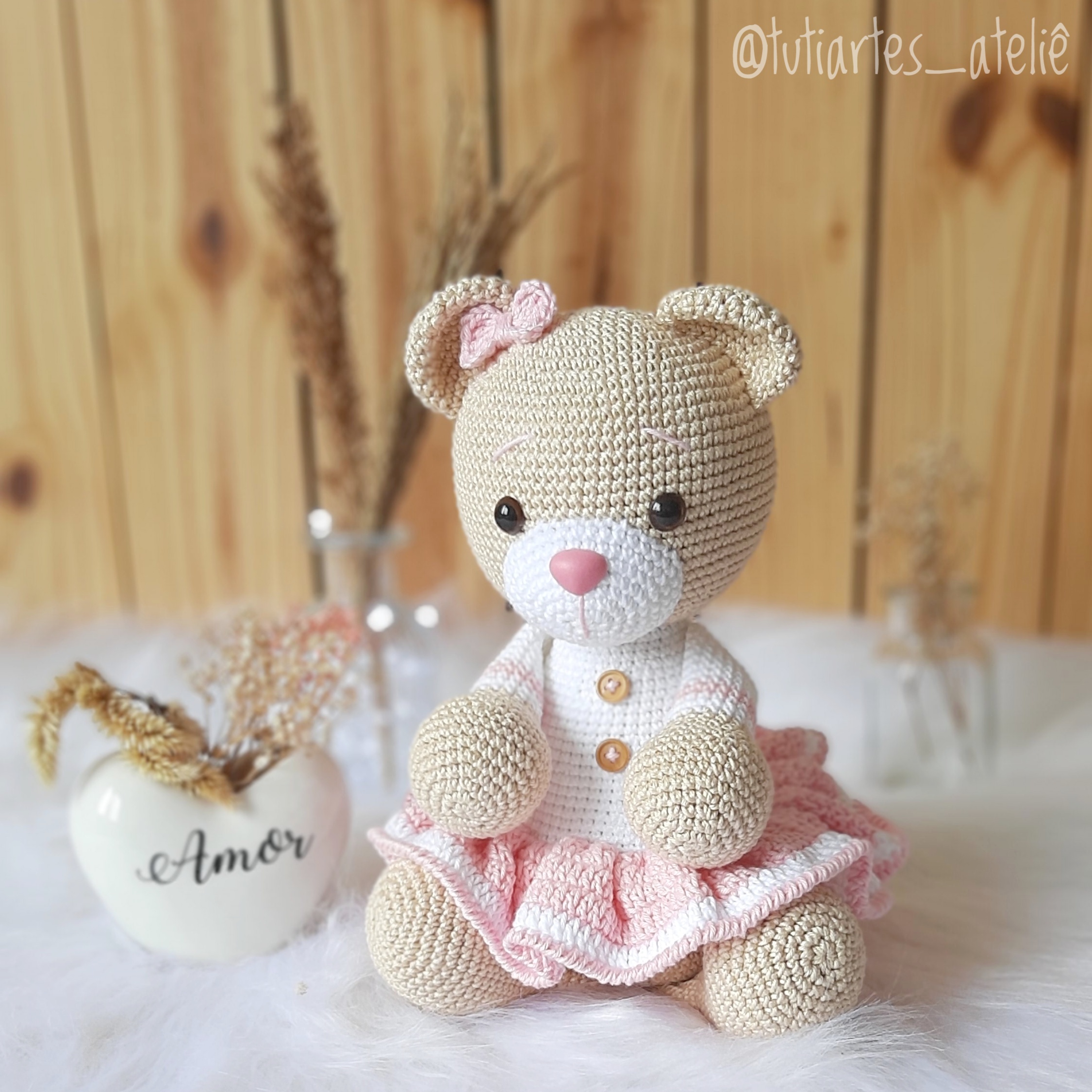 A Ursinha Mili é toda feita à mão em crochê (técnica amigurumi) o fio usado é 100% algodão, enchimento com fibra siliconada antialérgica e olhinhos com trava de segurança. Linda, fofa e charmosa. Confira!!!